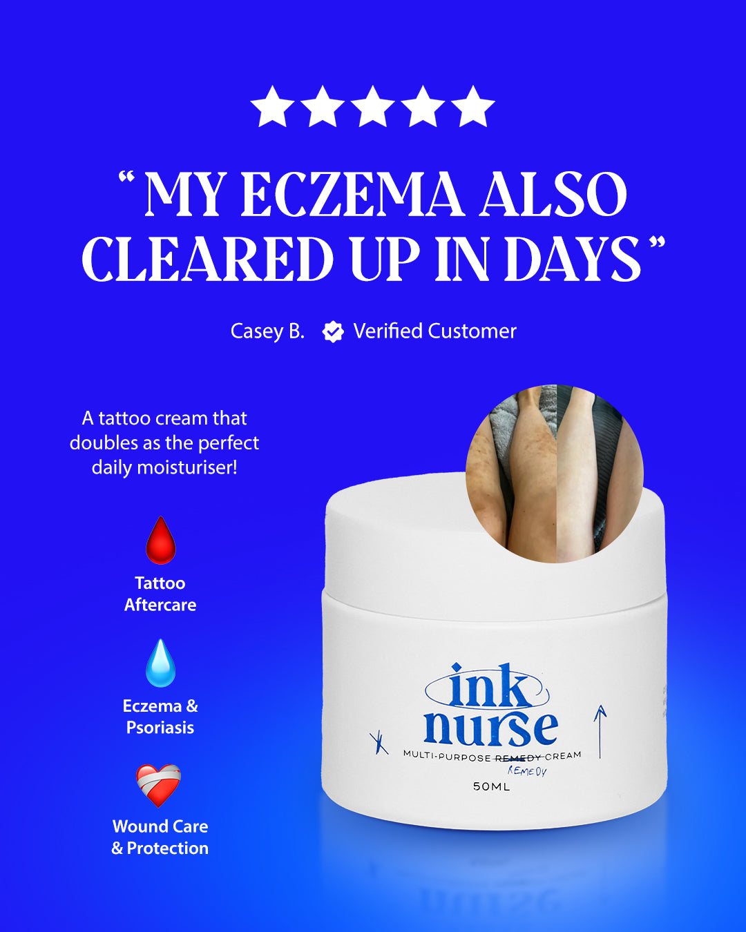 Ink Nurse was built for fresh tattoos. But the same botanicals that heal new ink - Aloe Vera, Bisabolol, Rosehip Oil - work just as hard on irritated, reactive, and sensitive skin every day.